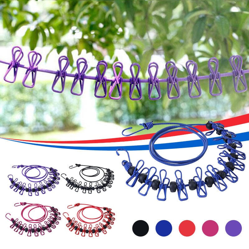 ❤☞ Versatile travel laundry rack with clips and steel hooks on either side, perfect for placement anywhere: in hotels, bathrooms, laundry areas, RVs, boats, balconies, or even in trees.